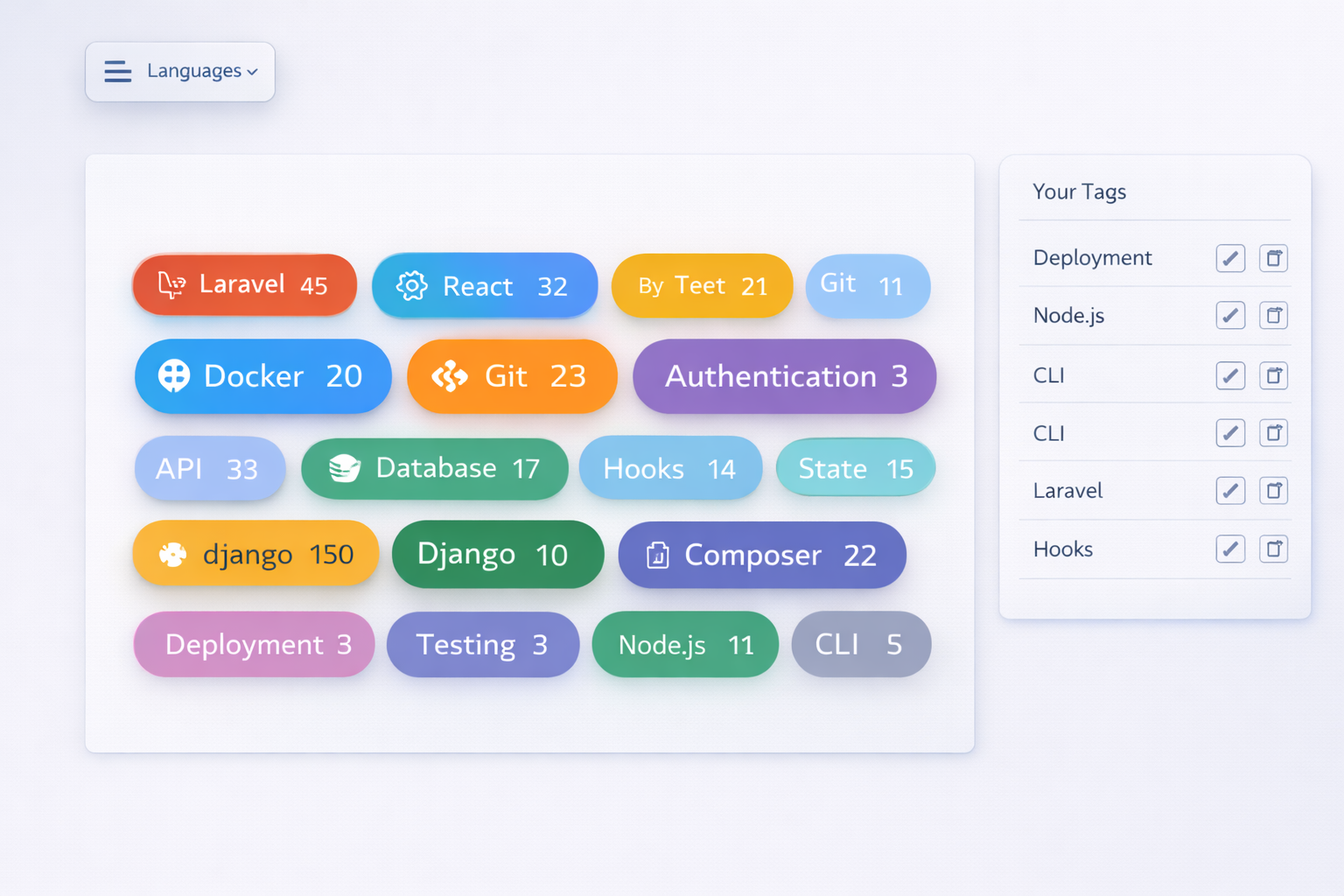 Crée tes propres tags, filtre par langage ou framework. CodeBox s'adapte à ta façon de travailler.