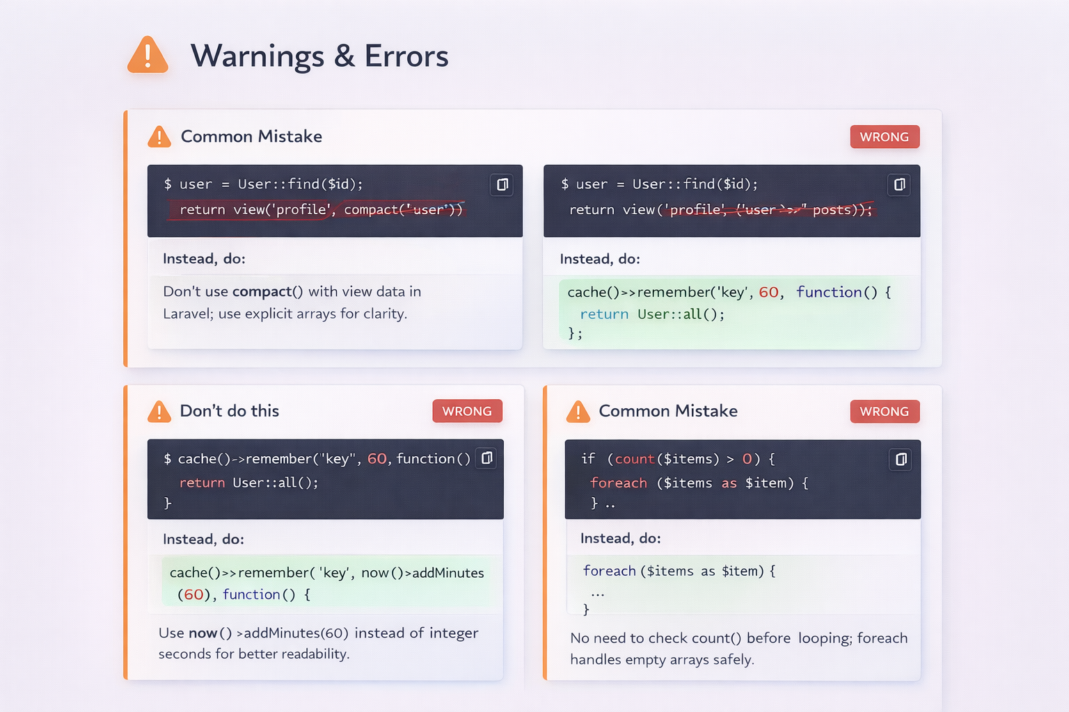 Documente les pièges et erreurs courantes pour chaque snippet. Ne refais jamais la même erreur deux fois.
